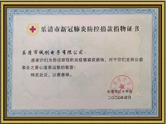 2020年度新冠肺炎防控捐款捐物證書